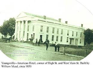 Young built a sawmill on the site. Stores, taverns, schools, and churches later followed as the community grew. For much of the nineteenth century, many of Youngsville’s businesses and industries depended on lumber. Saw, planing, and stave mills used lumber from the forests. Hotels and taverns, such as the American House and the Fairmont House fed and housed lumbermen on their way downriver.